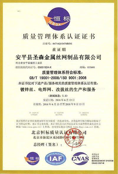 質(zhì)量認(rèn)證證書
